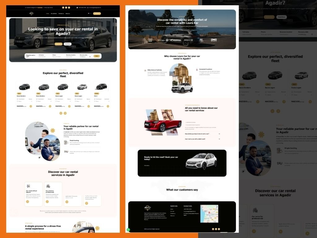 A professional car rental website built with WordPress, focused on service presentation, easy navigation, and SEO optimization to attract local customers in Agadir.